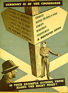 Propaganda and information control in Allied occupied Germany was a primary tool utilized by OMGUS and the Allies. This informational control was informed by two concurrent processes occurring in the wake of the Second World War. The first, denazification, was a primary objective of OMGUS and served to root out whatever remained of the Nazi Party, its associations with German society, and its ideology, particularly from 1945 to 1947. This propaganda was disseminated to persuade the German people of the finality of their defeat in World War II, as well as to pave the way for US designs of democratization in Germany. The other, taking much more precedence in the later years of OMGUS from 1947 to 1949, was the increasing competition for political, economic, and cultural influence between the Western Allies and the Soviet Union as Germany became increasingly divided between the two ideologically divided super-powers.