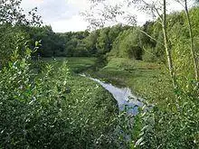 This northwestern tip of Ogston Reservoir is cut off from the main reservoir by the B6014. This is where the River Amber joins the reservoir, its course can be seen when water levels are low | |