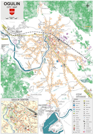 The town of Ogulin is situated in the very centre of mainland Croatia, between Zagreb and Rijeka. It was founded in a large valley formed by two rivers: the Dobra and Zagorska Mrežnica. The administrative constitution of the town of Ogulin covers the area of 543.32 km2,[1] and has about 14,000 inhabitants according to 2011 census.