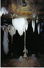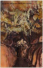 Ohio Caverns is a show cave located 30 miles (48 km) from Dayton, Ohio near West Liberty, in Salem Township, Champaign County, Ohio in the United States. A popular tourist destination and member of the National Caving Association, it is the largest of all the cave systems in Ohio and contains many crystal formations. Approximately 90% of its stalactite and stalagmite formations are still active. The cavern system was originally an aquifer, holding an underground river of melted glacier water. This river eventually receded to lower levels of the ground and is now unseen.