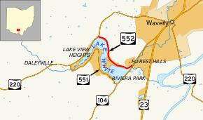 State Route 552 (SR 552) is an east-west state highway in southern Ohio. The western terminus of the route is at SR 220 about two and a half miles (4.0 km) west of Waverly. Its eastern terminus is at SR 104 nearly two miles (3.2 km) southwest of Waverly.