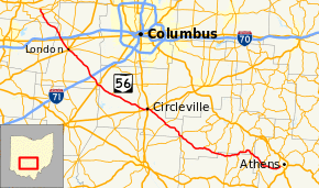 State Route 56 (SR 56) is a west–east state highway in central Ohio. Its western terminus is at SR 29 near Mutual, and its eastern terminus is at SR 682 in Athens.