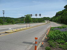When it was established in 1937, SR 682 ran from the SR 56 junction just southwest of Athens to the point where SR 682 currently meets the connector road to US 33 just southwest of Chauncey, and northwest of where SR 682 crosses over the Hocking River. At the time, this was where SR 682 met the predecessor to what would later become the first routing of US 33 through this area, known at the time as SR 31.[3][4] By 1961, a new stretch of expressway opened to the south of Chauncey. A re-routing of US 33 out of Chauncey and onto this new expressway resulted in an extension of SR 682 northeasterly into the village along the former two-lane routing of US 33 up to the state highway's current northern terminus at the SR 13 junction (the remainder of the old 33 became an extension for SR 13).[5][6] By 1969, SR 682 was extended southeasterly through Athens to its current southern terminus at US 33, US 50, and SR 32.[7][8]