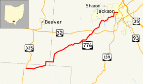 State Route 776 (SR 776) is an east–west state highway located in southern Ohio. The western terminus of SR 776 is at a T-intersection with SR 335 about 6 miles (9.7 km) north of Minford. Its eastern terminus is at another T-intersection with SR 139 in Jackson.