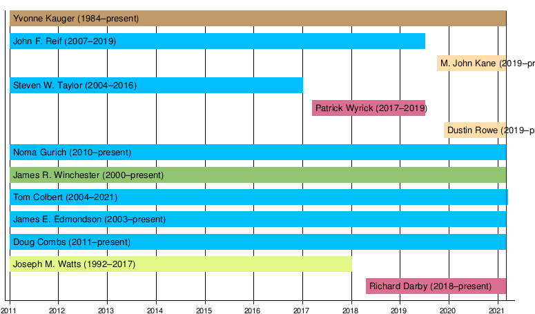 Dustin Rowe | Doug Combs | James Winchester | M. John Kane IV | Richard Darby | Yvonne Kauger | James Edmondson | Noma Gurich | Vacant |