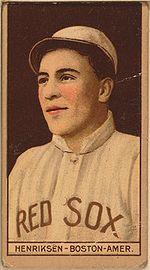 Henriksen batted and threw left-handed.[11] A baseball card from 1912, which was produced by a cigar company, calls him the "viking descended outfielder". He is described as a "slashing" hitter who quickly gathered interest from scouts of the Boston Americans. In the Major Leagues he was typically used as a pinch hitter, and as a consequence he only had an average of 1.9 plate appearances per game played over the course of his career. He never became a regular in the lineup but instead he served as a backup for Red Sox' famous outfield trio consisting of Tris Speaker, Harry Hooper and Duffy Lewis. In 1915 he appeared in 73 regular season games and 2 additional games in the playoffs which was his personal record.