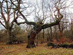 The Old Forest was a type of woodland nowadays described as temperate broadleaf and mixed forest. The west and south of the forest was dominated by "oaks and ashes and other strange trees", which were generally replaced by pines and firs in the north.[T 1] Beeches[T 9] and alders[T 1][T 10] were found here and there in the forest, and willows were dominant along the Withywindle.