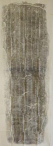 A limited number of Japanese words, mostly personal names and place names, are recorded phonetically in ancient Chinese texts, such as the "Wei Zhi" portion of the Records of the Three Kingdoms (3rd century AD), but the transcriptions by Chinese scholars are unreliable.[7] The oldest surviving native inscriptions, dating from the 5th or early 6th centuries, include those on the Suda Hachiman Shrine Mirror, the Inariyama Sword, and the Eta Funayama Sword. Those inscriptions are written in Classical Chinese but contain several Japanese names that were transcribed phonetically using Chinese characters.[8][9] Such inscriptions became more common from the Suiko period (592–628).[10] Those fragments are usually considered a form of Old Japanese.[11]