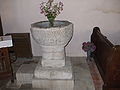 The church, dedicated to St Mary is a small building of stone rebuilt in 1875 the cost of £1256 largely being borne by the then rector, the Reverend Samuel Peshall who was rector for 60 years and the third generation of his family to hold the post.[3] Despite the rebuilding some earlier features remain, two 12th-century windows, a lancet window of the 13th century and the 14th-century south doorway, the one to north is of the 15th century and is blocked up. In the chancel there is a 12th-century piscina (restored) and an aumbury whilst the font has an archaic bowl with octagonal panels sculptured with foliage designs.[7] The east window to the memory of the Reverend Samuel D'Oyley Peshall rector between 1792 and 1859, contains a piece of old glass bearing the arms of Evesham Abbey whilst the west window is dedicated to Canon Warren who became rector in 1933. The small turret contains three bells one of which is of an ancient long waisted type which may be 13th century, the others are by John Martin of Worcester and dated 1674.[3] The puritan "Survei of the Ministrie in Warwickshier" of 1586 has some harsh words for the then Rector; "Geoffrie Heath parson dumbe idle and popish a verie dissolute man of life, he married first another mans wife, got a maide with childe, married a third; a common alehouse haunter and useth in(cantation) to plaie after a sorte the reconciler amongest the simple; value xx markes by the yeare".[8]