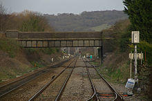 Oldfield Park was the third station to be constructed in Bath on the G.W.R. line. It is the only station whose platforms are below the surrounding road levels, all the rest of Bath's G.W.R. stations are elevated.[2] The Railway line divides Bath's road systems into two distinct areas.