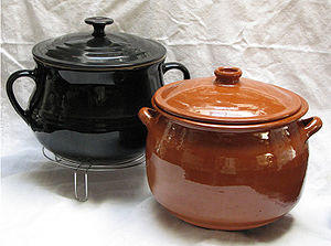 An olla is a ceramic jar, often unglazed, used for cooking stews or soups, for the storage of water or dry foods, or for other purposes like the irrigation[1] of olive trees. Ollas have short wide necks and wider bellies, resembling beanpots or handis.