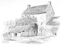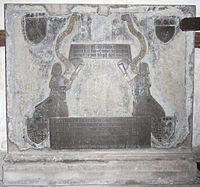 The remains of the mediaeval fortified manor of Olveston Court stand on the western outskirts of the village. It was for a while the seat of the Denys family of nearby Siston who had inherited Olveston manor, together with nearby Alveston, Earthcott Green, Siston and a moiety (1/2) of Aust together with the rights of the Hundred Court of Langley, in 1380 on marriage to Margaret Corbet, granddaughter of Sir Peter Corbet(d.1362) Lord of Caus, Shropshire. In addition to these Gloucestershire lands, the manors of Lawrenny in Pembrokeshire and Hope-juxta-Caus in Shropshire were also inherited.[3] Due to the possibility for confusion between Alveston and Olveston, the Inquisition post mortem of Sir Gilbert Denys, taken at Chipping Sodbury on 25 June 1422, is given here: