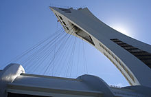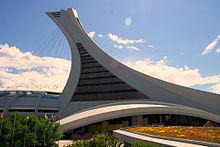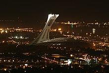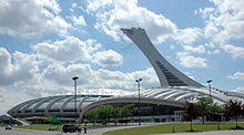 Olympic Stadium[1] (French: Stade olympique) is a multi-purpose stadium in Montreal, Canada, located at Olympic Park in the Hochelaga-Maisonneuve district of the city. Built in the mid-1970s as the main venue for the 1976 Summer Olympics, it is nicknamed "The Big O", a reference to both its name and to the doughnut-shape of the permanent component of the stadium's roof. The tower standing next to the stadium, The Montreal Tower, is the tallest inclined tower in the world with an angle elevation of 45 degrees. It is also called "The Big Owe" to reference the astronomical cost of the stadium and the 1976 Olympics as a whole.[6]