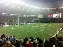 The Canadian Football League's Montreal Alouettes became the stadium's first major post-Olympic tenant when they moved their home games there halfway through the 1976 season. Capacity was reduced from its Olympic capacity of 72,000 to 58,500, but leapt to 66,308 when the natural grass was replaced with AstroTurf ahead of the 1977 season.[7] The Alouettes remained there through 1986, the franchise's final season of operations; the team would shut down shortly after the start of the 1987 season. A revived Alouettes franchise returned for the 1996 and 1997 seasons, but then moved to the Percival Molson Stadium in 1998, only using the larger Olympic Stadium for select regular-season and home playoff games. As of 2008, the franchise uses Olympic Stadium for playoff games only. Due to the increased popularity of the Alouettes and the small capacity of Percival Molson Stadium, the team considered returning to Olympic Stadium on a full-time basis, but instead renovated Percival Molson Stadium to increase its capacity.[42] In addition, the stadium holds the record for the largest Grey Cup attendance, that of the 1977 Grey Cup game, in which the hometown Montreal Alouettes defeated the Edmonton Eskimos, 41-6 before 68,318 spectators; this despite a local transit strike and harsh winter weather conditions.[43]