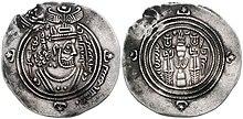 In 693, the Byzantine gold solidus was replaced in Syria and Egypt with the dinar.[100][104] Initially, the new coinage contained depictions of the Caliph as the spiritual leader of the Muslim community and its supreme military commander.[105] This image proved no less acceptable to Muslim officialdom and was replaced in 696 or 697 with image-less coinage inscribed with Qur'anic quotes and other Muslim religious formulas.[104] In 698/99, similar changes were made to the silver dirhams issued by the Muslims in the former Sasanian Persian lands of the eastern Caliphate.[106] Arabic replaced Persian as the language of the dīwān in Iraq in 697, Greek in the Syrian dīwān in 700, and Greek and Coptic in the Egyptian dīwān in 705/06.[104][107][108] Arabic ultimately became the sole official language of the Umayyad state,[106] but the transition in faraway provinces, such as Khurasan, did not occur until the 740s.[109] Although the official language was changed, Greek and Persian-speaking bureaucrats who were versed in Arabic kept their posts.[110] According to Gibb, the decrees were the "first step towards the reorganization and unification of the diverse tax-systems in the provinces, and also a step towards a more definitely Muslim administration".[100] Indeed, it formed an important part of the Islamization measures that lent the Umayyad Caliphate "a more ideological and programmatic coloring it had previously lacked", according to Blankinship.[111]