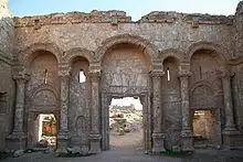 Umayyad authority nearly collapsed in their Syrian stronghold after the death of Mu'awiya II.[79] Al-Dahhak in Damascus, the Qays tribes in Qinnasrin (northern Syria) and the Jazira, the Judham in Palestine, and the Ansar and South Arabians of Homs all opted to recognize Ibn al-Zubayr.[80] Marwan ibn al-Hakam, the leader of the Umayyads expelled to Syria from Medina, was prepared to submit to Ibn al-Zubayr as well, but was persuaded to forward his candidacy for the caliphate by Ibn Ziyad. The latter had been driven out of Iraq and strove to uphold Umayyad rule.[79] During a summit of pro-Umayyad Syrian tribes, namely the Quda'a and their Kindite allies, organized by Ibn Bahdal in the old Ghassanid capital of Jabiya, Marwan was elected caliph in exchange for economic privileges to the loyalist tribes.[77][81] At the subsequent Battle of Marj Rahit in August 684, Marwan led his tribal allies to a decisive victory against a much larger Qaysite army led by al-Dahhak, who was slain.[77] Not long after, the South Arabians of Homs and the Judham joined the Quda'a to form the tribal confederation of Yaman.[81] Marj Rahit led to the long-running conflict between the Qays and Yaman coalitions. The Qays regrouped in the Euphrates river fortress of Circesium under Zufar ibn al-Harith al-Kilabi and moved to avenge their losses.[82][83] Although Marwan regained full control of Syria in the months following the battle, the inter-tribal strife undermined the foundation of Umayyad power: the Syrian army.[84]