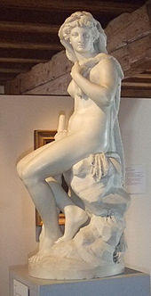 In Greek mythology, Omphale (/ˈɒmfəˌliː/; Ancient Greek: Ὀμφάλη) was queen of the kingdom of Lydia in Asia Minor. Diodorus Siculus provides the first appearance of the Omphale theme in literature, though Aeschylus was aware of the episode.[1] The Greeks did not recognize her as a goddess: the undisputed etymological connection with omphalos, the world-navel, has never been made clear.[2] In her best-known myth, she is the mistress of the hero Heracles during a year of required servitude, a scenario that offered writers and artists opportunities to explore sexual roles and erotic themes.