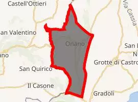 Onano borders the following municipalities: Acquapendente, Gradoli, Grotte di Castro, Latera, Sorano.