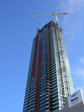 The remaining north tower was scheduled to begin construction after summer 2008 and be completed in 2009.[41] Originally, construction was supposed to commence in January 2008.[24][43][44] Later, the developer mentioned construction was going start in March, but the construction firm wasn't selected at that time. After March, the developer said construction was going to start in May 2008. However, following the worldwide financial crisis of the late summer and fall of 2008, the project's developers announced that construction of the second tower was indefinitely on hold. With improving economic conditions in the city, construction started on this tower on October 2012;[45] its first residents moved in August 2014.[8] The north tower was later renamed The Harrison.[46]