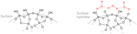 The surface of opal in contact with water is covered by siloxane bonds (≡Si–O–Si≡) and silanol groups (≡Si–OH). This makes the opal surface very hydrophilic and capable of forming numerous hydrogen bonds.