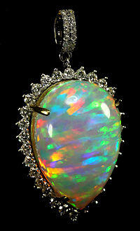 The town of Coober Pedy in South Australia is a major source of opal. The world's largest and most valuable gem opal "Olympic Australis" was found in August 1956 at the "Eight Mile" opal field in Coober Pedy. It weighs 17,000 carats (3.4 kg; 7.5 lb) and is 11 inches (280 mm) long, with a height of 4 3&fras1;4 in (120 mm) and a width of 4 1&fras1;2 in (110 mm).[27] The Mintabie Opal Field located about 250 km (160 mi) northwest of Coober Pedy has also produced large quantities of crystal opal and the rarer black opal. Over the years, it has been sold overseas incorrectly as Coober Pedy opal. The black opal is said to be some of the best examples found in Australia.