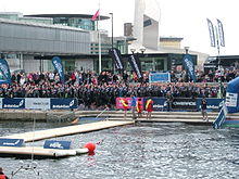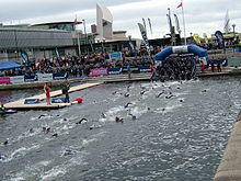 In the first edition of the modern Olympic Games in Athens in 1896, the swimming competition was held in open water. In 2000, the Olympic Games first included a triathlon with a 1500 m swim leg, and in 2008, a 10 km open water swim. The FINA World Aquatics Championships has featured open water swimming events since 1992. The FINA World Open Water Swimming Championships was held from 2000 to 2010. Since 2007, the FINA 10 km Marathon Swimming World Cup is held in several events around the world.