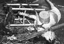 At 9:00 on July 1, Gilda was dropped from the B-29 Superfortress Dave's Dream of the 509th Bombardment Group. The plane, formerly known as Big Stink, had been the photographic equipment aircraft on the Nagasaki mission in 1945. It had been renamed in honor of Dave Semple, a bombardier who was killed during a practice mission on March 7, 1946.[57] Gilda detonated 520 feet (158 m) above the target fleet, with a yield of 23 kilotons. Five ships were sunk.[24][35] Two attack transports sank immediately, two destroyers within hours, and one Japanese cruiser the following day.[58]