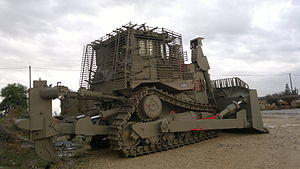 The next day before dawn, the army surrounded Tel al-Sultan. Armoured vehicles, tanks and bulldozers supported by helicopter gunships entered the Tel al-Sultan quarter of Rafah simultaneously from several directions; the troops established a cordon around the area and separated the area from the rest of Rafah. A number of armoured vehicles entered through UNRWA schools in the southeastern part, causing extensive damage to the school grounds. Ambulances were prevented from evacuating the casualties out of fear that they would be hijacked by terrorists. Palestinians were prevented from accessing UNRWA's health clinic in the area.[8] An ambulance was fired at. When a convoy of four ambulances accompanied by a Reuters vehicle were sent, they were also fired at. When they arrived at the victim, Israeli soldiers continued to fire.[15] Israeli IDF Caterpillar D9 armoured bulldozers erected sand-barriers around Rafah to isolate it. Later, the D9s entered into the Rafah in order to open routes and demolish houses, allegedly used by militants. Extensive damage was caused to roads, water and sewage pipes and agricultural areas with greenhouses.[16]