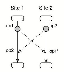 - ^ a b c d e Ressel, Matthias and Nitsche-Ruhland, Doris and Gunzenhäuser, Rul (1996). "An integrating, transformation-oriented approach to concurrency control and undo in group editors". CSCW '96: Proceedings of the 1996 ACM conference on Computer supported cooperative work. pp. 288–297. doi:10.1145/240080.240305.