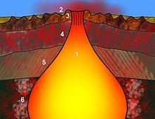 The term ophiolite originated from publications of Alexandre Brongniart in 1813 and 1821. In the first, he used ophiolite for serpentinite rocks found in large-scale breccias called mélanges.[14][15] In the second publication, he expanded the definition to encompass a variety of igneous rocks as well such as gabbro, diabase, ultramafic and volcanic rocks.[15] Ophiolites thus became a name for a well-known association of rocks occurring in the Alps and Apennines of Italy.[15] Following work in these two mountains systems, Gustav Steinmann defined what later became known as the "Steinmann Trinity": the mixture of serpentine, diabase-spilite and chert.[15] The recognition of the Steinmann Trinity served years later to build up the theory around seafloor spreading and plate tectonics.[16] A key observation by Steinmann was that ophiolites were associated to sedimentary rocks reflecting former deep sea environments.[15] Steinmann himself interpreted ophiolites (the Trinity) using the geosyncline concept.[17] He held that Alpine ophiolites were "submarine effusions issuing along thrust faults into the active flank of an asymmetrically shortening geosyncline".[18] The apparent lack of ophiolites in the Peruvian Andes, Steinmann theorized, was either due to the Andes being preceded by a shallow geosyncline or representing just the margin of a geosyncline.[17] Thus, Cordilleran-type and Alpine-type mountains were to be different in this regard.[17] In Hans Stille's models a type of geosyncline called eugeosynclines were characterized by producing an "initial magmatism" that in some cases corresponded to ophiolitic magmatism.[17]