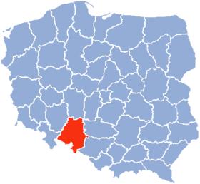 Opole Voivodeship, or Opole Province[3] (Polish: województwo opolskie [vɔjɛˈvutstfɔ ɔˈpɔlskʲɛ]), is the smallest and least populated voivodeship (province) of Poland. The province's name derives from that of the region's capital and largest city, Opole. It is part of Upper Silesia. A relatively large German minority, with representatives in the Sejm, lives in the voivodeship, and the German language is co-official in 28 communes.