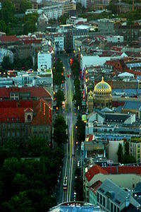Oranienburger Straße is a street in central Berlin, the capital of Germany. It is located in the borough of Mitte, north of the River Spree, and runs south-east from Friedrichstraße to Hackescher Markt.