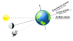 For geostationary spacecraft, thruster burns orthogonal to the orbital plane must be executed to compensate for the effect of the lunar/solar gravitation that perturbs the orbit pole with typically 0.85 degrees per year.[3] The delta-v needed to compensate for this perturbation keeping the inclination to the equatorial plane amounts to in the order 45 m/s per year. This part of the GEO station-keeping is called North-South control.[4]