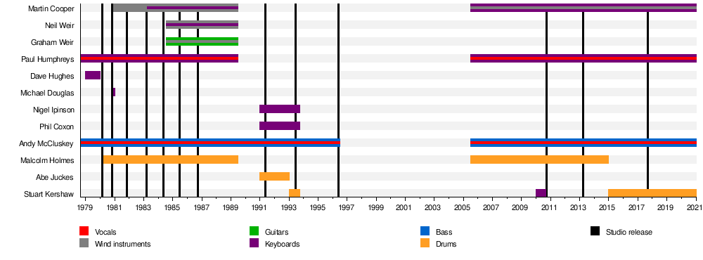 - Andy McCluskey – bass guitar, keyboards, vocals (1978–96; 2005–present)