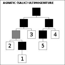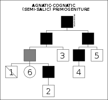 Agnatic-cognatic (or semi-Salic) succession, prevalent in much of Europe since ancient times, is the restriction of succession to those descended from or related to a past or current monarch exclusively through the male line of descent: descendants through females were ineligible to inherit unless no males of the patrilineage remained alive.
