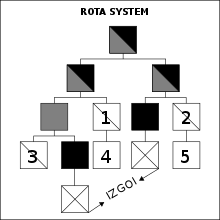 The rota system, from the Old Church Slavic word for "ladder" or "staircase", was a system of collateral succession practised (though imperfectly) in Kievan Rus' and later Appanage and early Muscovite Russia.
