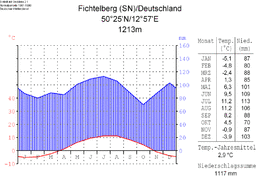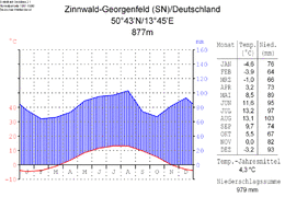 Climatic diagram of Zinnwald-Georgenfeld[10]