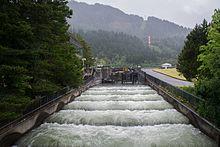 Because of its diverse landscapes and waterways, Oregon's economy is largely powered by various forms of agriculture, fishing, and hydroelectric power. Oregon is also the top timber producer of the contiguous United States, and the timber industry dominated the state's economy in the 20th century.[11] Technology is another one of Oregon's major economic forces, beginning in the 1970s with the establishment of the Silicon Forest and the expansion of Tektronix and Intel. Sportswear company Nike, Inc., headquartered in Beaverton, is the state's largest public corporation with an annual revenue of $30.6 billion.[12]