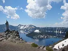 Oregon is one of the most geographically diverse states in the U.S.,[9] marked by volcanoes, abundant bodies of water, dense evergreen and mixed forests, as well as high deserts and semi-arid shrublands. At 11,249 feet (3,429 m), Mount Hood, a stratovolcano, is the state's highest point. Oregon's only national park, Crater Lake National Park, comprises the caldera surrounding Crater Lake, the deepest lake in the United States. The state is also home to the single largest organism in the world, Armillaria ostoyae, a fungus that runs beneath 2,200 acres (8.9 km2) of the Malheur National Forest.[10]