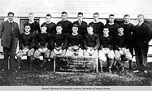 In 1899, the football team left the state for the first time, playing the California Golden Bears in Berkeley, California.[3] Oregon's largest margin of victory came in 1910 when they defeated the University of Puget Sound 115–0.[8]