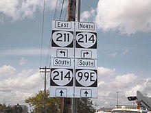 OR 214's northern terminus is at the junction with Interstate 5 and OR 219 in the city of Woodburn. (A single diamond interchange serves both OR 219 and OR 214 from the freeway; OR 219 leads west of the interchange and OR 214 heads east). The roadway heads due east into the city of Woodburn for about 2.5 miles (4.0 km), skirting the northern edge of town (though passing through a very busy shopping district). It then intersects with both OR 99E and OR 211; OR 214 continues south from this intersection, sharing an alignment with OR 99E for 1.2 miles (1.9 km), officially along the Pacific Highway East No. 1E. OR 214 then departs from OR 99E and heads southeast.