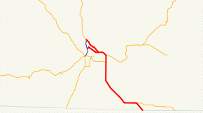 At that intersection, OR 39 then turns due south, and is now known as the Klamath Falls-Malin Highway. OR 39 shares an alignment with OR 140 for about two miles (3 km), until OR 140 west diverges once again as the Southside Expressway. OR 39 then leave the Klamath Falls metropolitan area, and heads south-southeast for about 12 miles (19 km), until it reaches the town of Merrill. The highway then turns due east, running parallel to the California border. About 2 miles (3.2 km) east of Merrill, OR 39 and the Klamath Falls-Malin Highway depart; with the latter continuing east towards Malin, and OR 39 turning southeast. It runs southeast for 2 more miles as the Hatfield Highway No. 426 ending at the California border. The highway continues into California as State Route 139, which continues on to Tulelake, Canby, California, and other points in Northern California. At the state line is an intersection with State Route 161. Via State Route 299 and U.S. Route 395, one may continue on to Reno, Nevada.