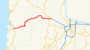Oregon Route 6 is a state highway in the U.S. state of Oregon that runs between the city of Tillamook on the Oregon Coast, to the Willamette Valley, near Banks. OR 6 traverses the Wilson River Highway No. 37 of the Oregon state highway system,[2] named after the river paralleling the highway's western segment.
