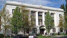 The Oregon Supreme Court Building currently houses the courtroom for the Supreme Court and the state's law library.[5] This single courtroom is also home to where oral arguments are heard for the Oregon Court of Appeals,[13] while the building is home to Oregon Judicial Department.[14] The Supreme Court's courtroom and offices for the justices are located on the third floor.[12] This building is the oldest state government building in Oregon.[5] In 2006, new security measures were implemented at the building that require visitors to sign in with an Oregon State Police officer who is posted at a security desk near the main entrance to the building on the first floor.[15]