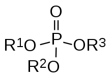 Organophosphates (also known as phosphate esters, or OPEs) are a class of organophosphorus compounds with the general structure O=P(OR)3 , a central phosphate molecule with alkyl or aromatic substituents.[1] They can be considered as esters of phosphoric acid. Like most functional groups organophosphates occur in a diverse range of forms, with important examples including key biomolecules such as DNA, RNA and ATP, as well as many insecticides, herbicides, nerve agents and flame retardants. OPEs have been widely used in various products as flame retardants, plasticizers, and performance additives to engine oil. The popularity of OPEs as flame retardants came as a substitution for the highly regulated brominated flame retardants.[2] The low cost of production and compatibility to different polymers made OPEs to be widely used in different industries including textile, furniture, electronics as plasticizers and flame retardants. These compounds are added to the final product physically rather than by chemical bond.[3] Due to this OPEs leak into the environment more readily through volatilization, leaching, as well as abrasion.[4] OPEs have been detected in different environmental compartments such as air, dust, water, sediment, soil and biota samples at higher frequency and concentration.[1][4]