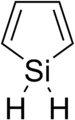 Siloles, also called silacyclopentadienes, are members of a larger class of compounds called metalloles. They are the silicon analogs of cyclopentadienes and are of current academic interest due to their electroluminescence and other electronic properties.[21][22] Siloles are efficient in electron transport. They owe their low lying LUMO to a favorable interaction between the antibonding sigma silicon orbital with an antibonding pi orbital of the butadiene fragment.