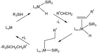 In the related silylmetalation, a metal replaces the hydrogen atom.