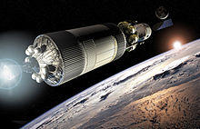 The Earth Departure Stage (EDS) was the propulsion system designed to put the Altair upper stage on a lunar trajectory from within low Earth orbit. It was designed as the second liquid-fueled stage of the Ares V rocket. The Orion spacecraft would have been launched separately by Ares I, and then met and docked with the Ares V-launched EDS/Altair combination, delivering the crew and configuring the spacecraft for its journey to the Moon in a process known as Earth orbit rendezvous.