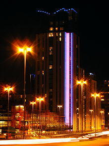 The Orion Building is a 90-metre (295 ft) tall high rise residential building on Navigation Street, Birmingham 5, England. Construction of the tower began in 2004 with demolition of the previous building on the site, and was completed in 2007. As part of the development, the original façades of some of the previous buildings have been retained and incorporated into the lowrise sections of the complex. The complex consists of a 28-storey tower with five basement floors. It includes the city's first penthouse which was sold for £1.65 million.[2] The fourth and final phase of the building, being marketed as 'Sirius', is nearing completion.