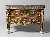 Rococo commode; 1730-1745; spruce, oak, violet, rosewood, coniferous, ormolu ornaments, copper, and marble; height: 82 cm; Rijksmuseum (Amsterdam, the Netherlands)